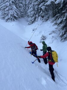 Osvojení správná práce s lavinovým vybavením při lavinové záchraně.