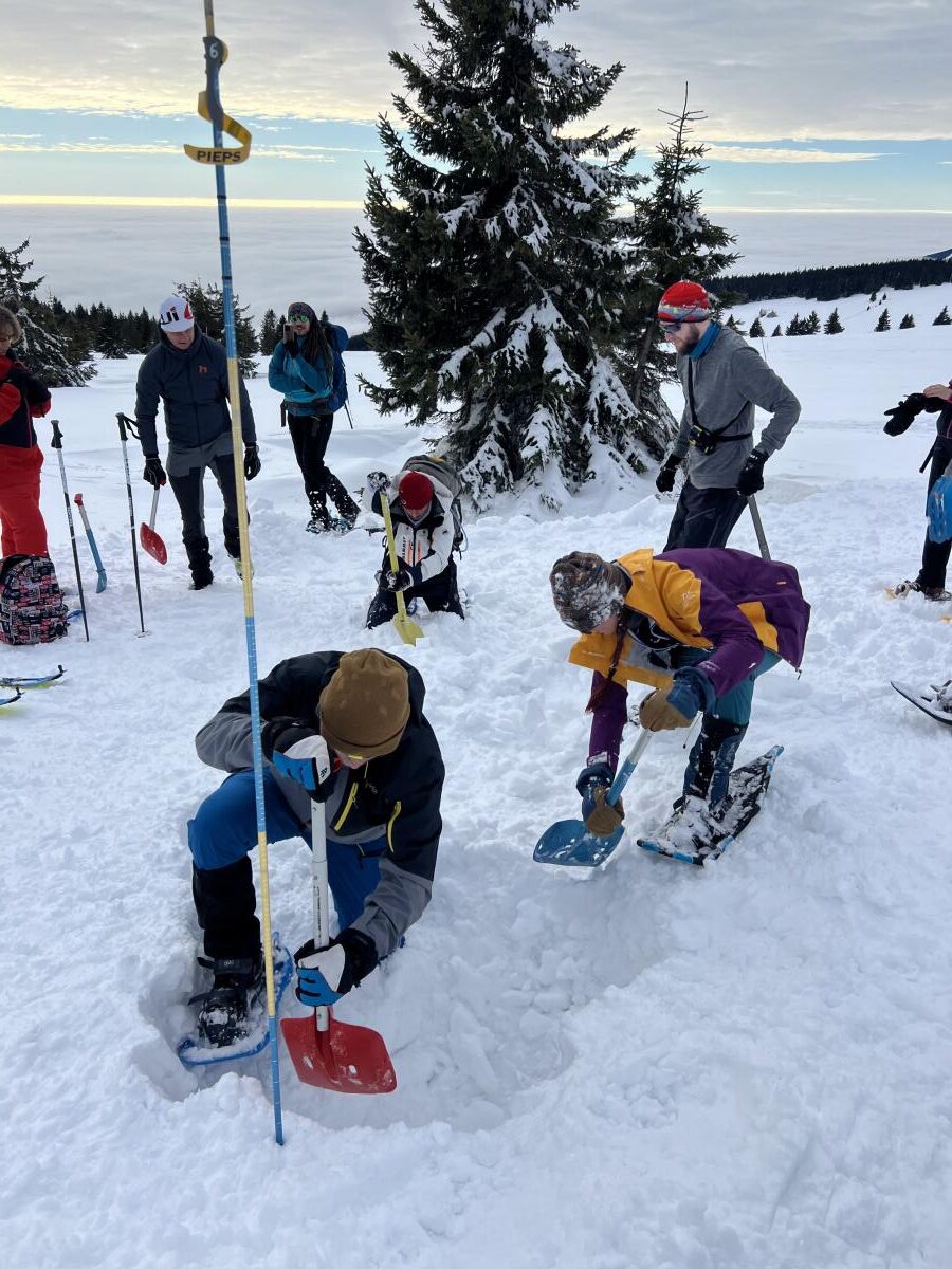 V malých skupinách vás čeká propojování teorie s praxí. Večerní intenzivní přednášky na horské chatě jsou základem pro následující vydatný trénink přímo v terénu. Vše, co se dozvíte, si ověříte v přímo v praxi. Vyzkoušíte si různé lavinové vyhledávače, sondy a lopaty. Seznámíte se se základy první pomoci a vyzkoušíte si nouzové transportní prostředky. Naučíte se rozeznávat různé typy sněhu a dozvíte se, jak se testuje míra hrozícího lavinového nebezpečí. Pocítíte na vlastní kůži, jaké je to pod lavinou, a jaké je vykopávat svého kamaráda.